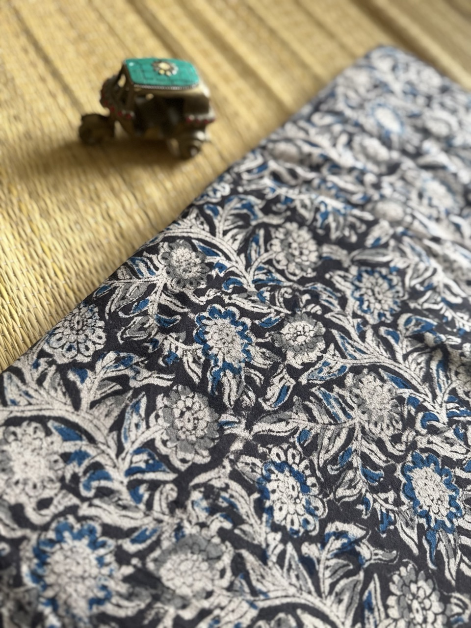 Be the first to review “Kalamkari handblock printed cotton fabric – Black (qty in 10cm)”