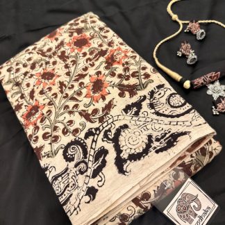 Experience the timeless charm of Indian craftsmanship with our Kalamkari Handblock Printed Sarees — each piece a masterpiece of art, patience, and heritage.