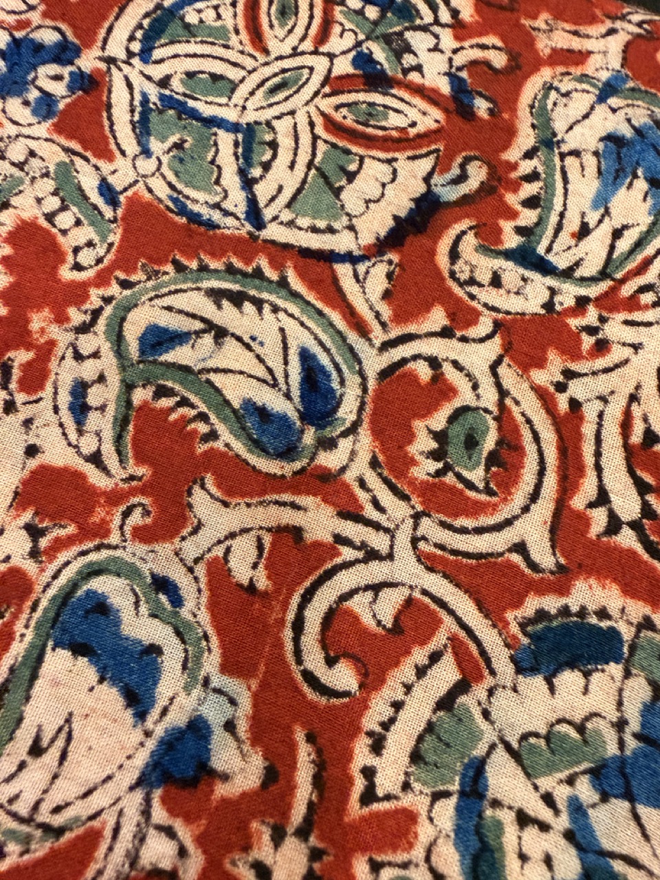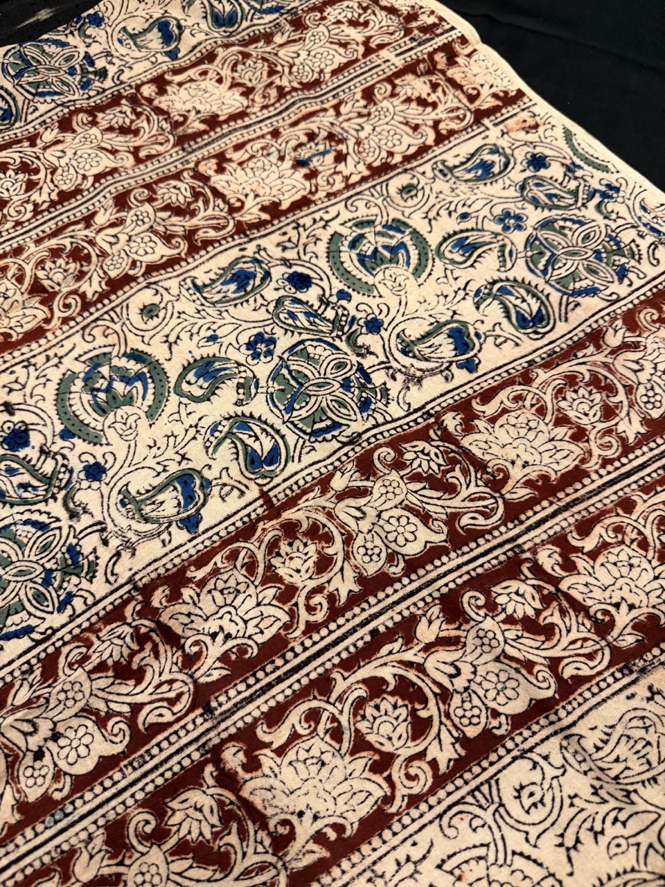 Kalamkari Handblock Printed saree – Terracotta Bloom