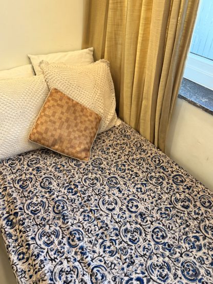 Be the first to review “Kalamkari Handblock Printed Single Bedsheet – Blue Floral on white”