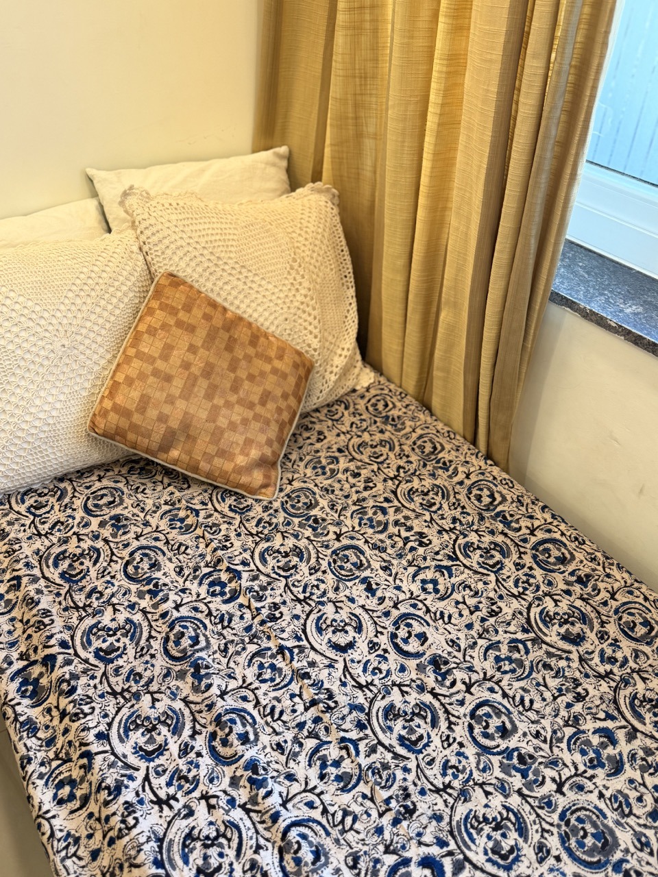 As this is a handblock printed and handcrafted product, minor variations in size (±1–2 inches) may occur. These variations are inherent to the artisanal process and add to the uniqueness of the product.