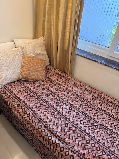 Kalamkari Handblock Printed Single Bedsheet – Stripe Garden
