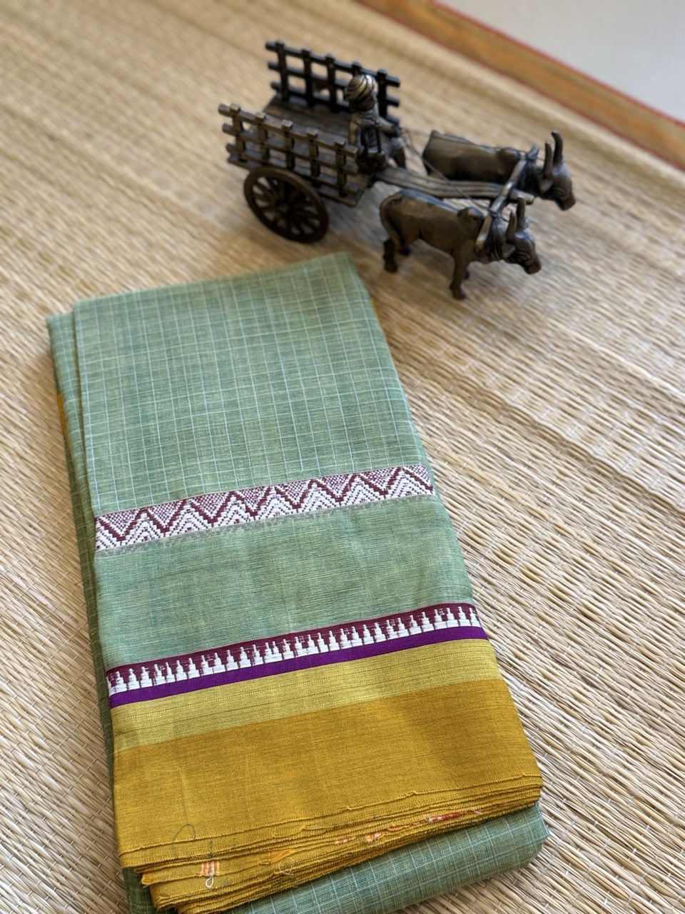 Be the first to review “Sage Mustard Narayanpet Cotton Saree”