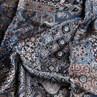 Ajrakh Screen Printed Mashru Silk Fabric – Blue & Black