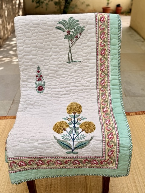 Premium Hand Block Printed AC Double Comforter – Reversible & Machine Quilted – Teal Canonical