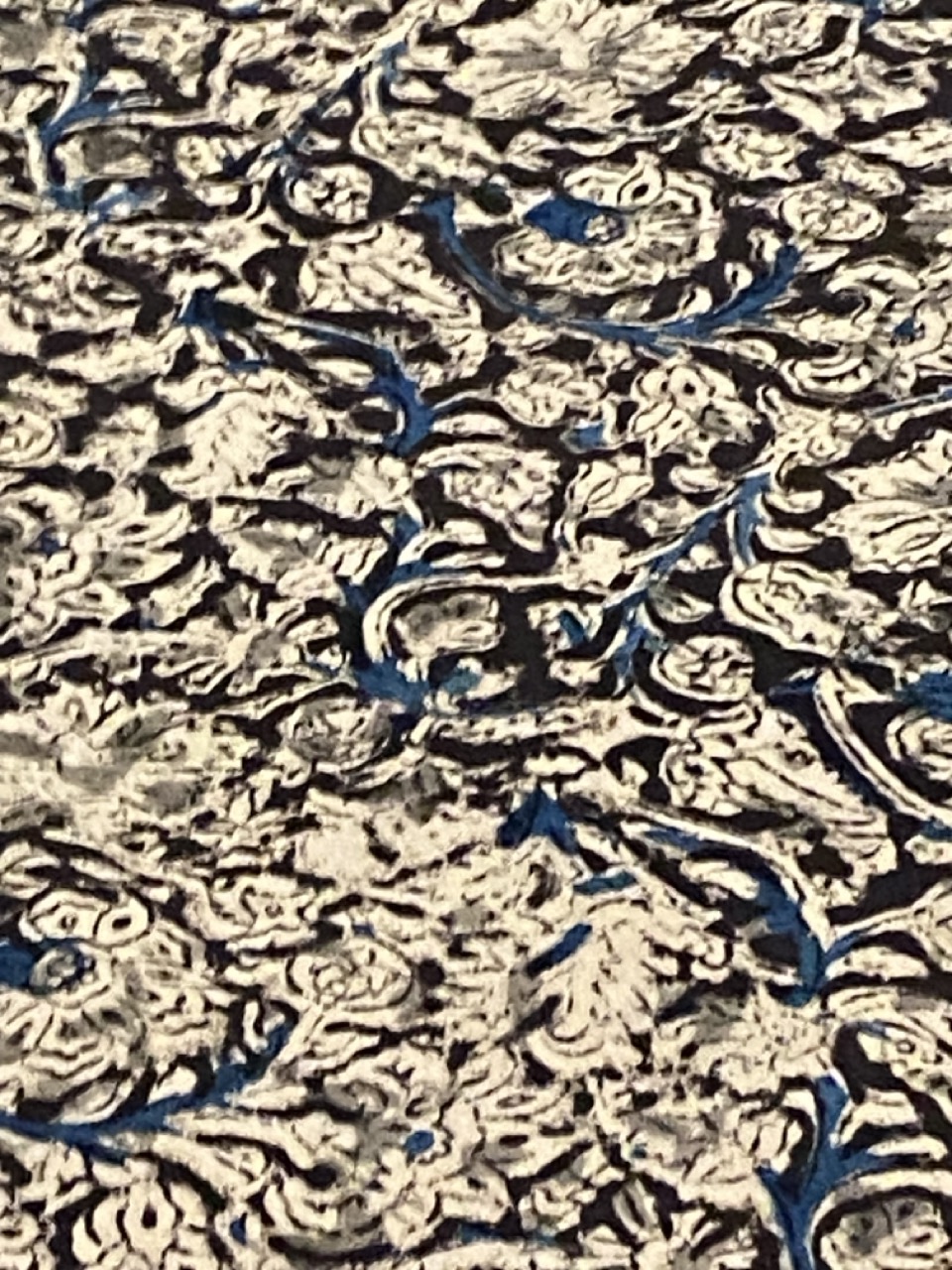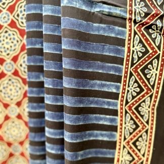- Hand block-printed Kalamkari design in vibrant red, blue, and earthy tones.