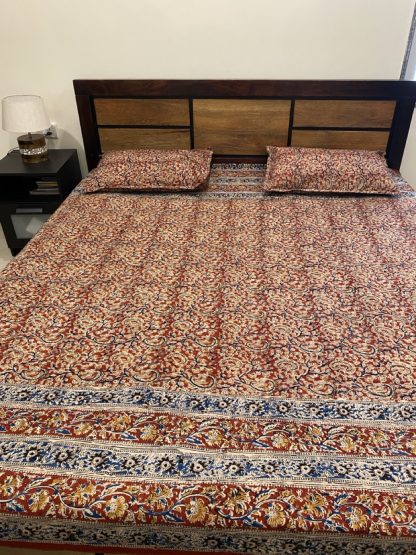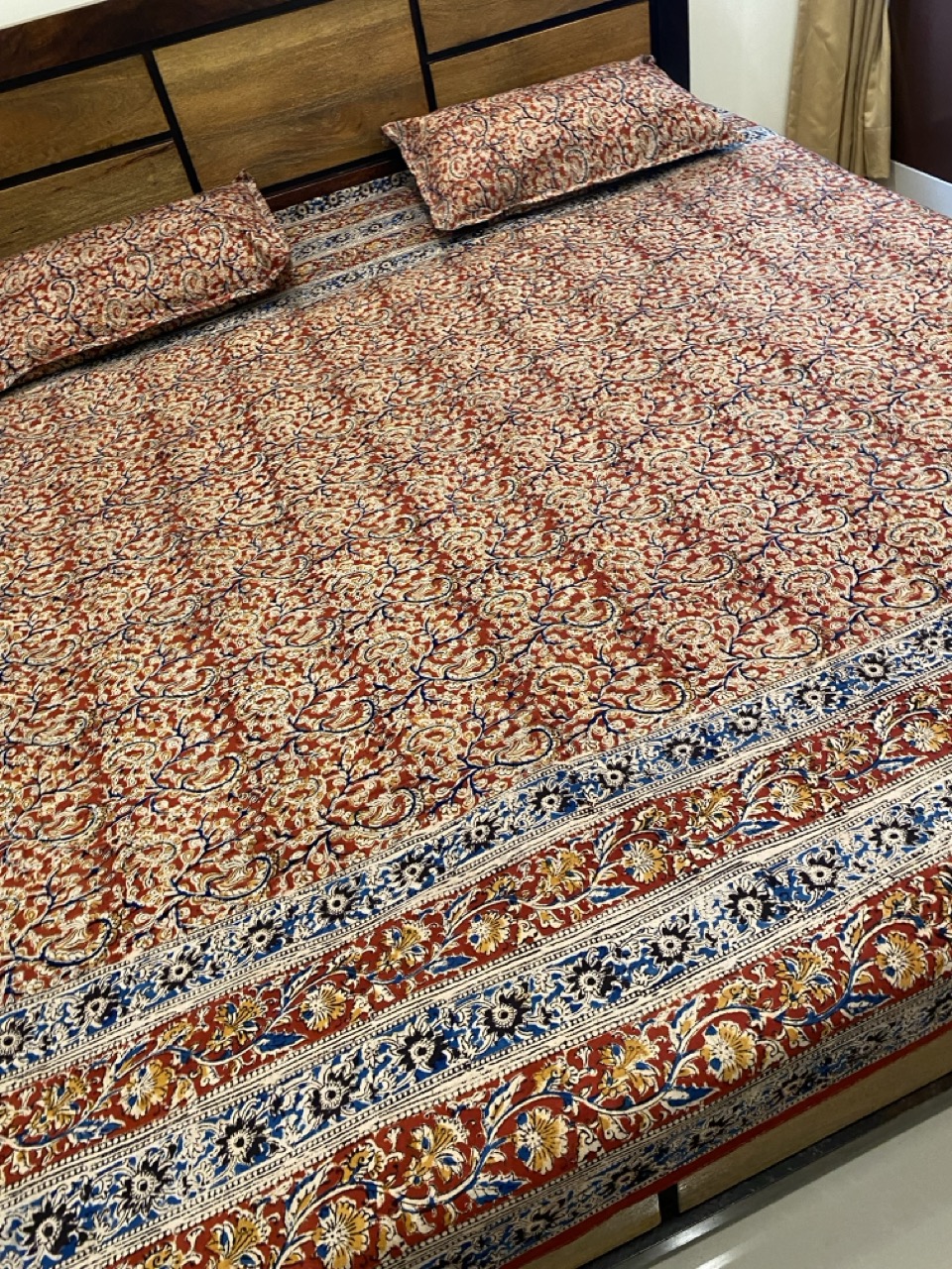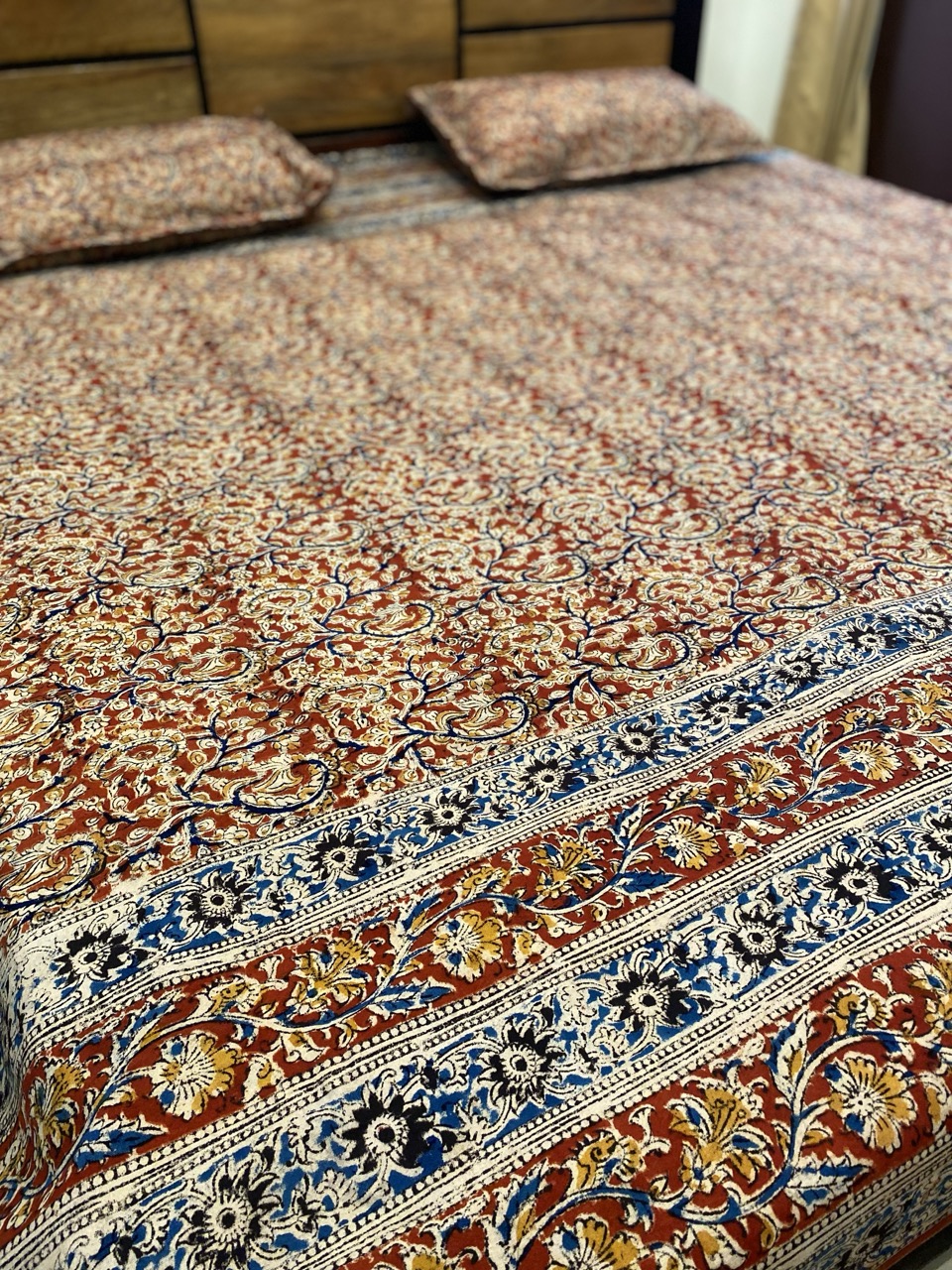 Beautiful handblock printed Kalamkari bedsheets with key highlights: