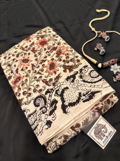 Experience the timeless charm of Indian craftsmanship with our Kalamkari Handblock Printed Sarees — each piece a masterpiece of art, patience, and heritage.