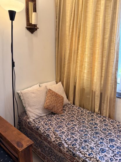 Be the first to review “Kalamkari Handblock Printed Single Bedsheet – Blue pea”