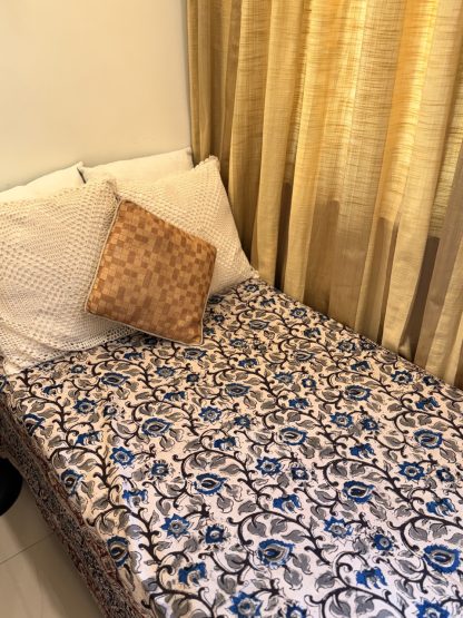 Kalamkari Handblock Printed Single Bedsheet – Blue pea