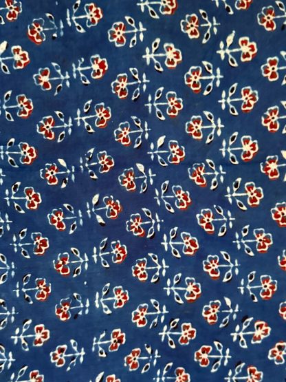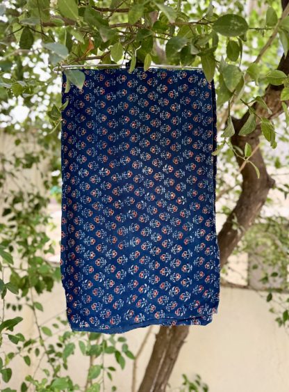 Modal Silk Ajrakh Handblock Printed Fabric – Kusum – BlueRed
