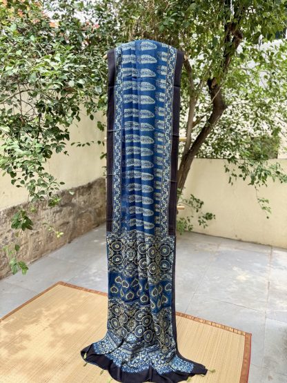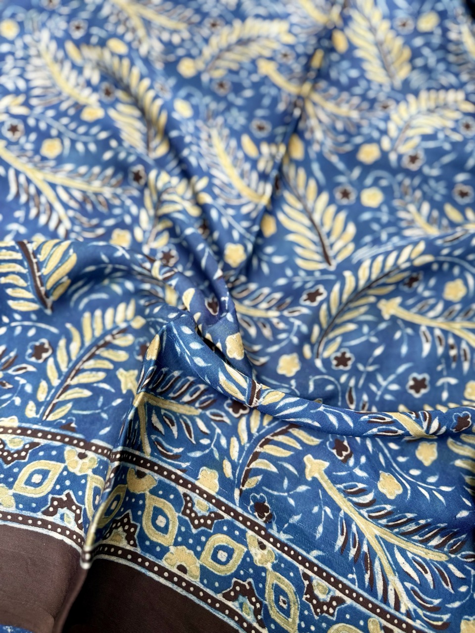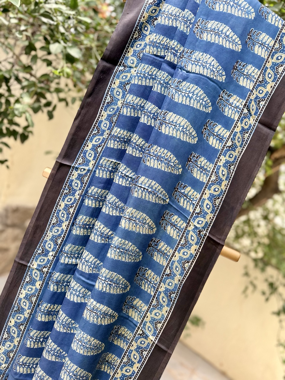 Ajrakh Modal Silk Saree – NeelKalā – Whispering Ferns