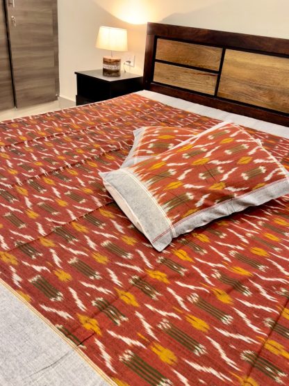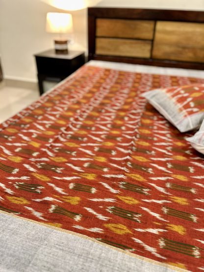Pochampally Ikkat DWP Bedsheet – Brick color