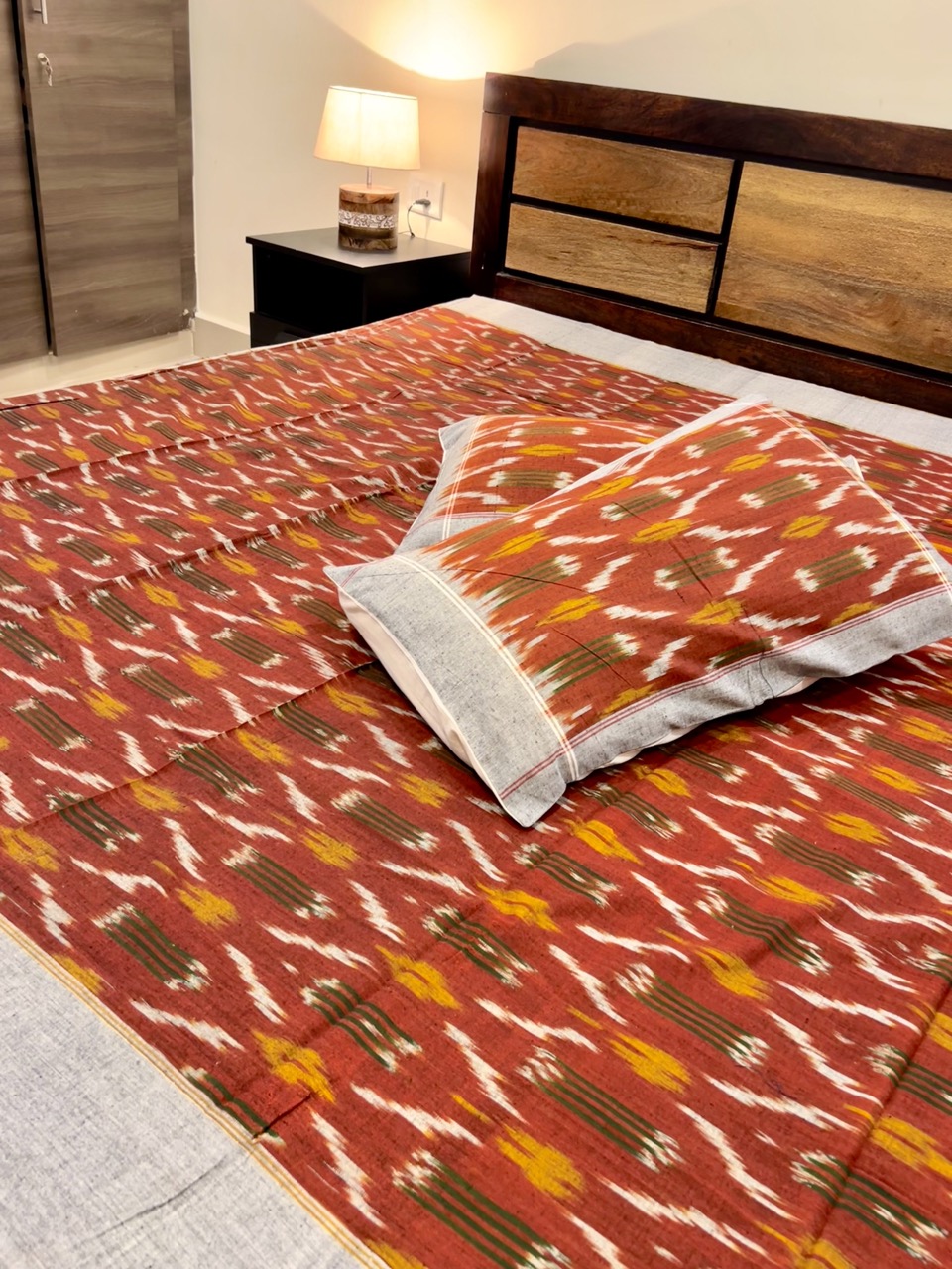 Product Name: Handcrafted Ikkat King-Size Cotton Bedsheet Set