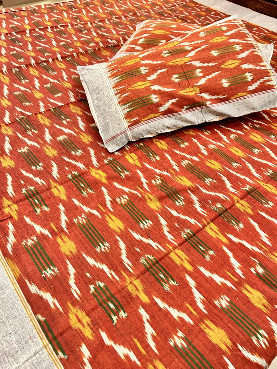 Be the first to review “Pochampally Ikkat DWP Bedsheet – Brick color”