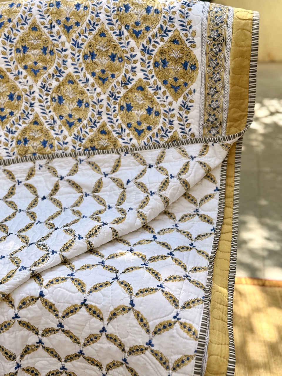 Be the first to review “Premium Hand Block Printed AC Single Comforter – Reversible & Machine Quilted – Mustard Yellow”
