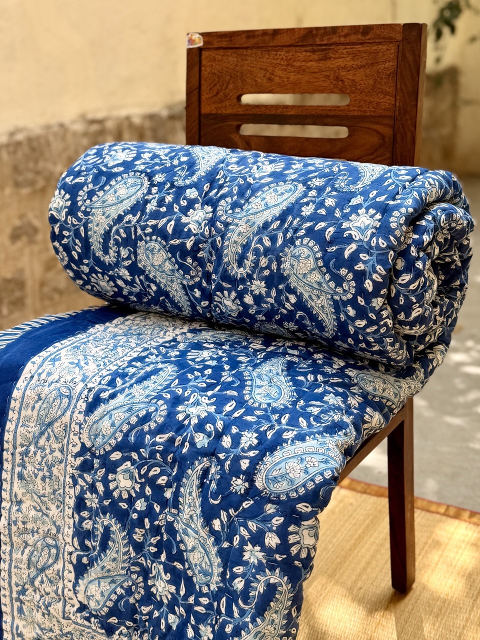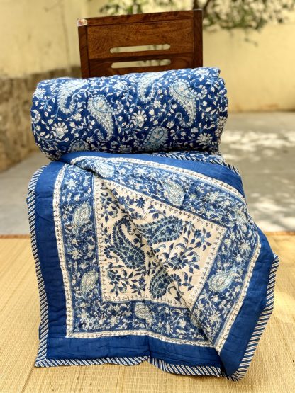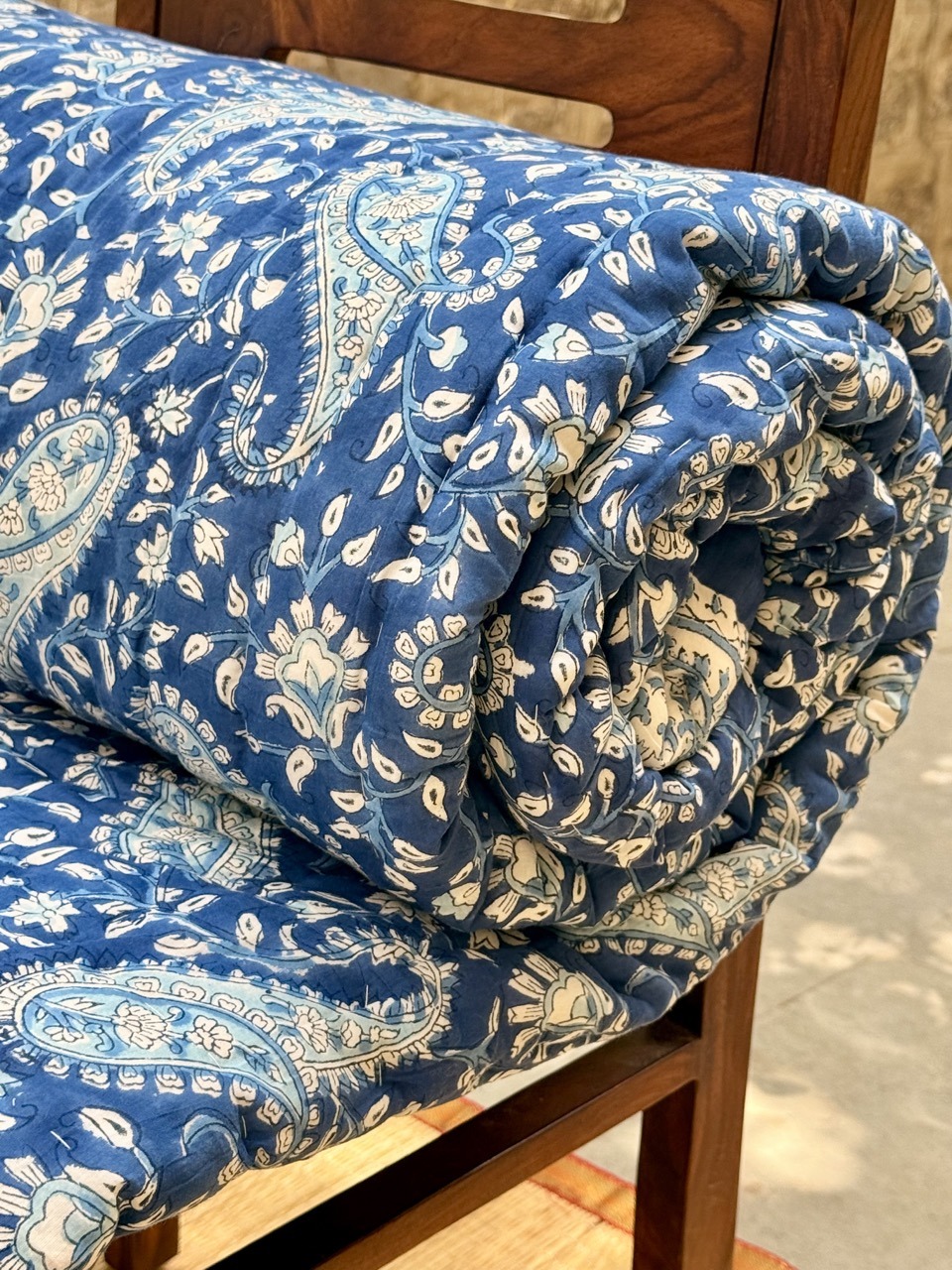 ✔ Handcrafted Beauty: Adorned with traditional hand-block prints, each quilt is a masterpiece of Rajasthani craftsmanship.